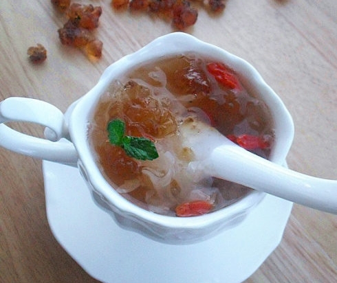 2.泡发后的桃胶有些小黑点儿剔除备用